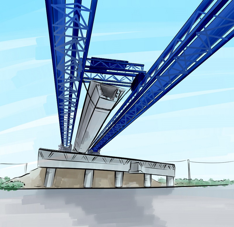 1、主機過孔完成后,后支腿用鋼墊塊墊起,使4個墊墩著地受力,并用精軋螺紋鋼和手拉葫蘆錨固(橋臺處只用手拉葫蘆錨固)。 2、必須確認遙控器同時選擇主機、輔助支腿行走電機,利用遙控器